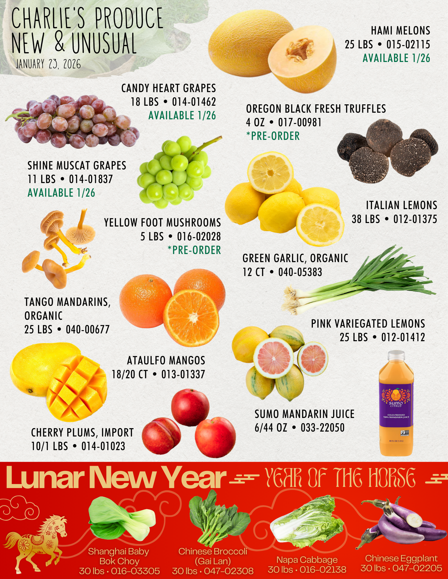 We’re ringing in Lunar New Year the right way! New this week we’ve got Shanghai baby bok choy, Chinese broccoli, Chinese eggplant and pink variegated lemons! See the full flyer for more fresh finds: