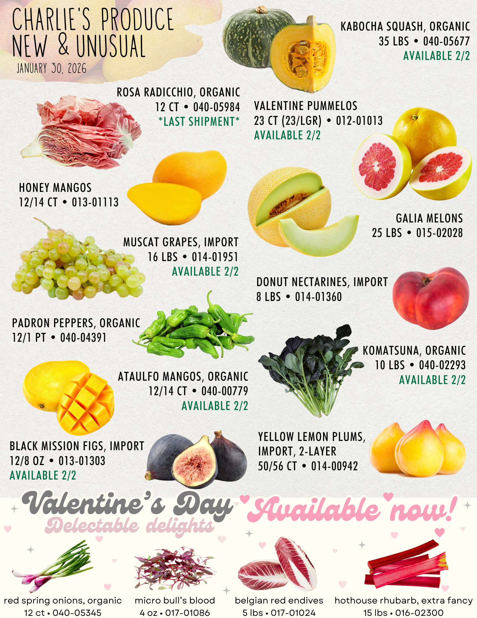 Love is in the air, and the color is in the flavor! New and Unusual this week are honey mangos, red spring onions, extra fancy hothouse rhubarb and yellow lemon plums! Fall in love with more fresh finds in the full flyer: