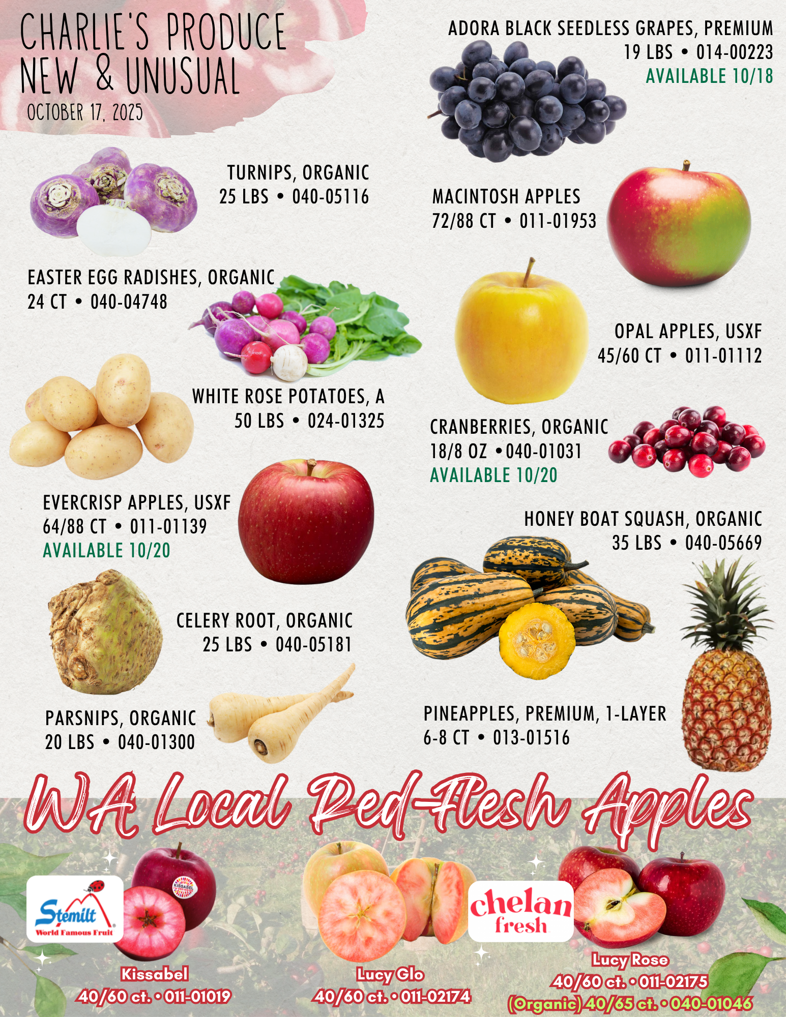 While apple season is still going strong, we’ve got lots of other fresh color picks on this week’s flyer; Adora black seedless premium grapes, Easter egg radishes, organic Honey Boat squash, and more!