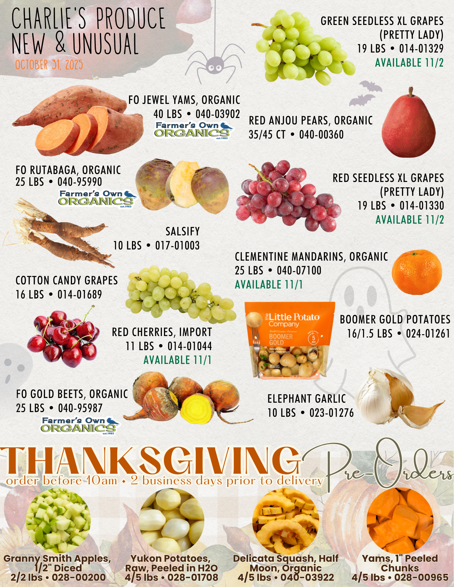 Spooky, New AND Unusual! This week’s flyer features Pretty Lady XL green and red grapes, organic red Anjou pears and FO gold organic beets. Check out other fresh offerings on the full flyer!