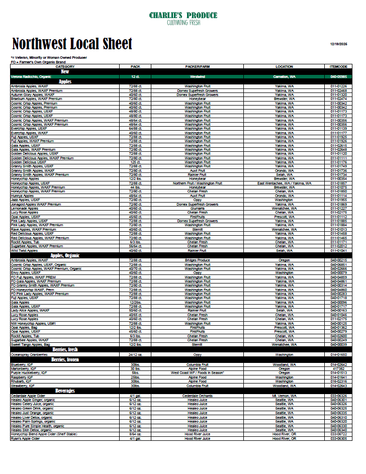 Local this week we’ve got organic Verona radicchio and more – see the full sheet for more fresh finds!