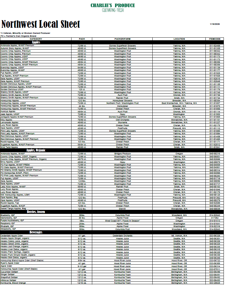 Winter root vegetables are in peak season now! Browse the sheet to see the rest of our local offerings.