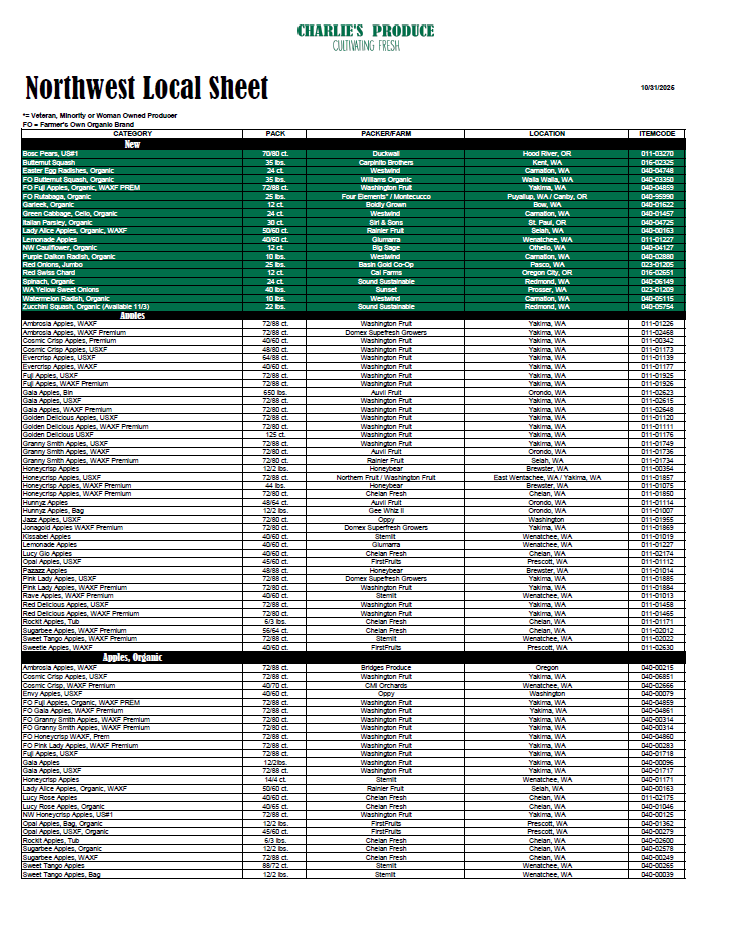 Local this week we’ve got organic WAXF Lady Alice apples, red Swiss chard, WA yellow sweet onions and more!